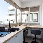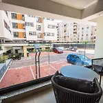 This property includes a balcony and a seating area with an air conditioner for utmost comfort. A highlight of the apartment for guests is the presence of hairdryers and towels in the bathroom. Additionally, you'll find a separate toilet and a shower.
